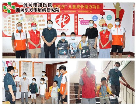 2021年8月20日下午,濰坊銀康銀屑病醫院銀康慈善基金聯合坊子區民政局、坊城街道社工站共同開展了黨建引領 童舟共濟兒童助力成長的愛心走訪活動,關懷慰問坊子社區的事實兒童。