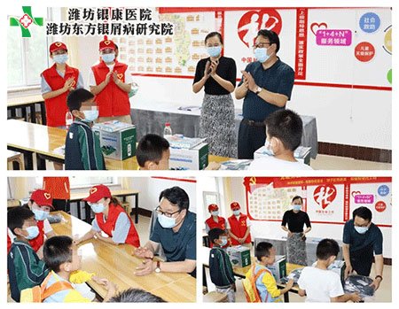 濰坊銀康銀屑病醫院銀康慈善基金為孩子們捐贈了愛心書包文具和牛奶等物資,關愛呵護孩子們健康成長,希望孩子們能有一個天真快樂、無憂無慮的童年。濰坊銀康銀屑病醫院李華杰院長、院辦楊主任以及坊城街道社工站、銀康義工隊的志愿者們共同參加了此次走訪慰問。